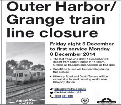 Another Greenway link opens. In October 2013 the BUGBlog reported on construction of a Bicycle & Pedestrian Activated (BPA) ‘push button’ crossing on the Outer Harbour Greenway across David Terrace at Kilkenny. Commuters will have noticed that while all the crossing’s infrastructure now appears to have been in place for some months, the lights and controls have been inactive and hidden away under protective coverings. That may be about to change!