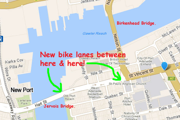 3. Coming – New Bike Lanes on St. Vincent Street, Port Adelaide: The State Government’s 2014/2015 Black Spot Cycling Project Program has announced the the proposed installation of a bike lane on St Vincent Street, Port Adelaide from the Nelson Street corner to the Jervois Bridge. Also included in the Black Spot program’s projects will be the fixing of gaps in the bike lane on Grand Junction Road from Churchill Road to Hancock Road in the East!