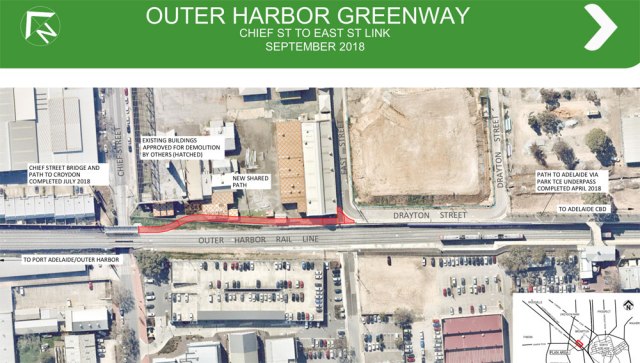 4. Outer Harbor Greenway Detour: While work proceeds on new housing around the Bowden gasworks sites, new detours between Gibson and Chief Streets have been announced, effective until February 2019. The map below seems more or less self-explanatory! We’re assured that the detours will be effectively signposted…