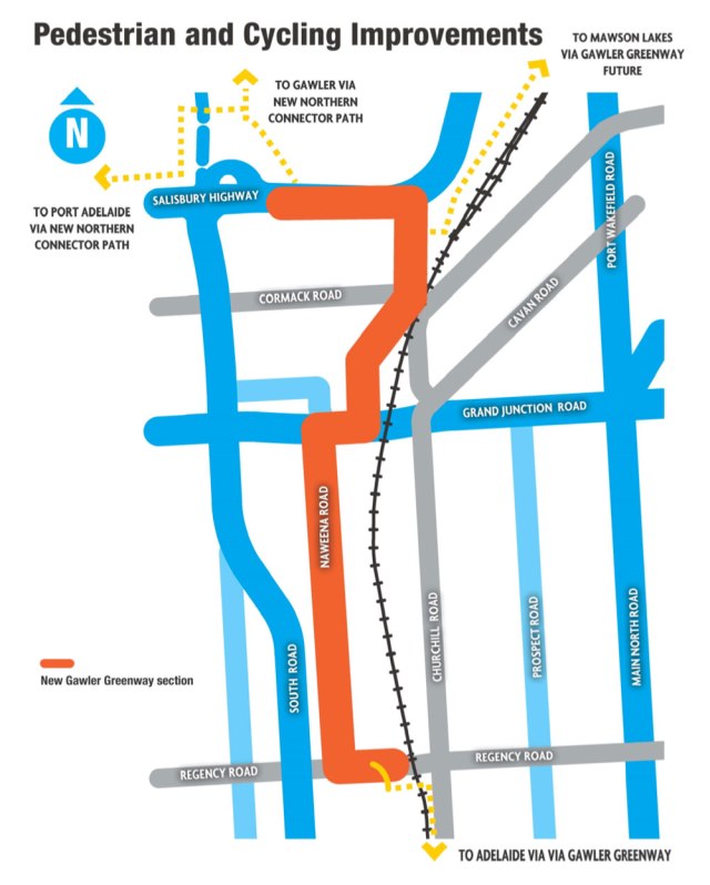 - a cycling route between Regency Road, Wingfield & the Salisbury Highway, Dry Creek