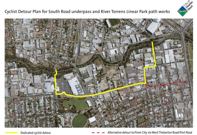 2. Closure of the Linear Path Underpass at South Road: Charles Sturt Council have announced the commencement of work to upgrade the Linear Path underpass at South Road. They say: “The South Road Underpass and River Torrens Linear Park Path (RTLP) adjacent the Hindmarsh Cemetery has been identified for renewal in the City of Charles Sturts Transport Asset Management Plan.”