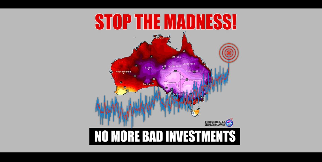 CEDAMIA (Climate Emergency Declaration and Mobilisation In Action) are gathering signatures for their NO MORE BAD INVESTMENTS petition. They are seeking action by South Australian’s Lower House, asking them to declare that we are facing a climate emergency and to take immediate steps to reduce carbon emissions.