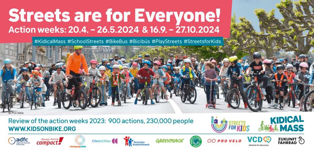 From big cities to rural areas, we as the Kidical Mass action alliance are united by the vision that children and young people should be able to move around safely and independently on foot and by bike.