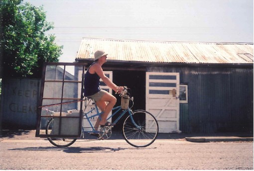 Longbike delivering windows – Musgrave Street Bicycle Workshop.