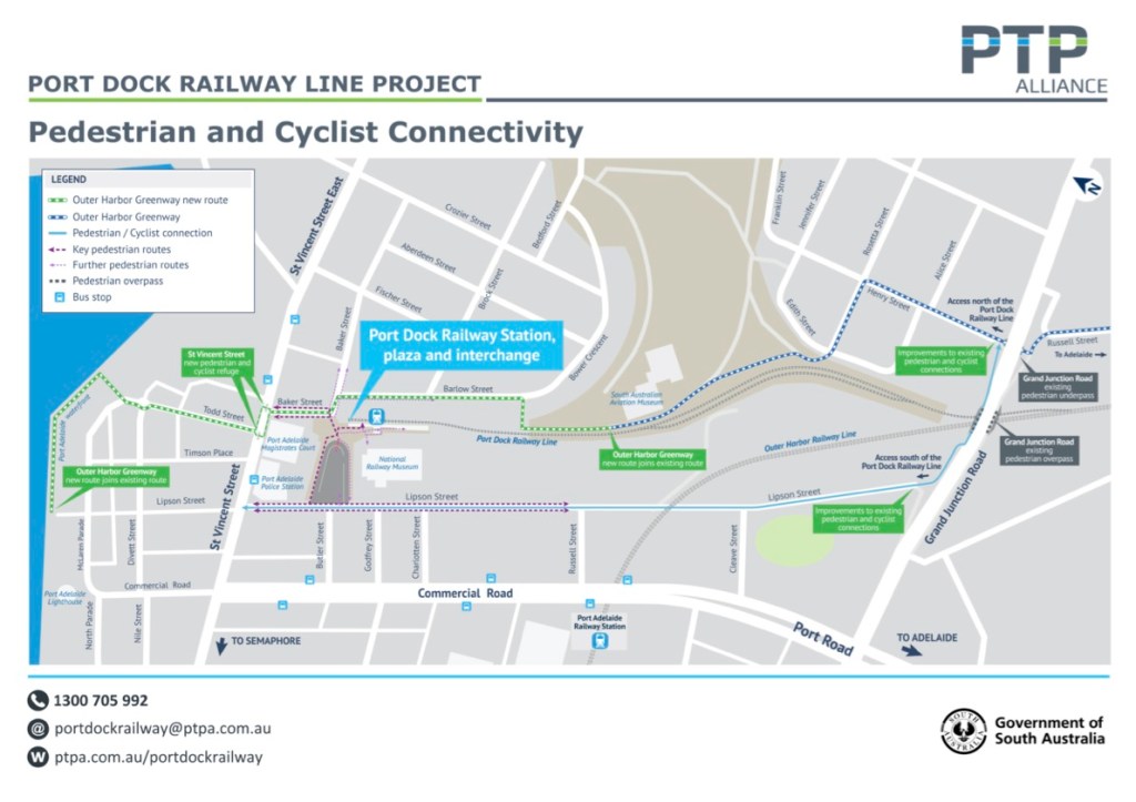 Port Dock Station Project: Upgrading of footpaths & bike lanes on & around Lipson & Godfrey Streets, new bike crossings on St Vincent St (adjacent to Todd St) & new pedestrian crossing points on Lipson St.