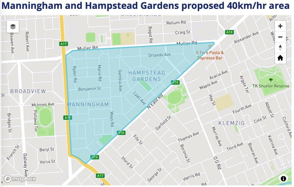 Port Adelaide/Enfield Council are conducting further public consultations for establishing 40km/h area speed limits for Manningham & Hampstead Gardens.