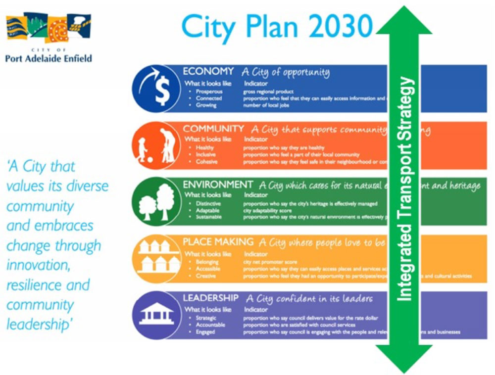 PortBUG has great hopes for Port Adelaide/Enfield’s new Integrated Transport Plan. If appropriately supported & funded it will be a very progressive step forward for a Council facing enormous transport-related challenges over the next decade. It will be the first such ITP undertaken by any Council in SA and will provide an overall framework for the inclusion (see below) of cycling & Active Transport generally into all of Council’s planning & investment processes.