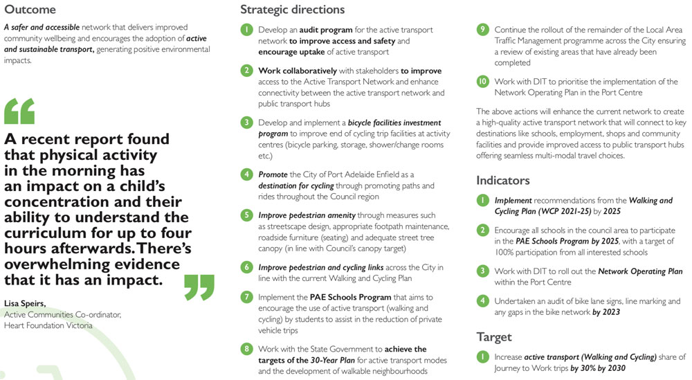 “The Port Adelaide Bicycle User Group (PortBUG) have been engaged throughout the development of the draft plan. Council Administration met with PortBUG representatives in July 2021 to discuss the draft plan and their feedback in detail. Further engagement with the PortBUG and other stakeholders will continue moving forward through the finalisation of the plan and implementation.”