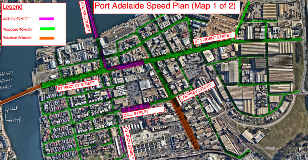 new proposals for 40km/hr speed limits at Semaphore & the Port Adelaide CBD (including key sections of the Outer Harbor Greenway)