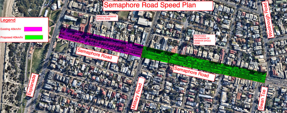 Proposed extension of Semaphore Road’s 40km/hr zone.