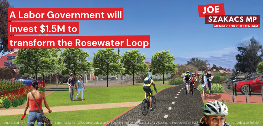 The redeveloped Rosewater Loop shared-use pathway will provide a major upgrade in equitable access to a large number of local services, recreational assets, public transport centres, schools & shops.
